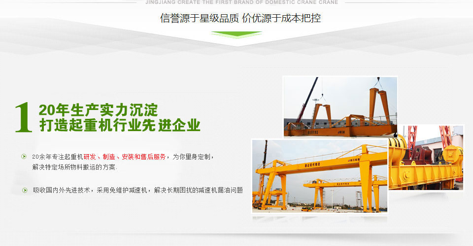 靖江市起重設(shè)備廠家直銷懸臂起重機(jī)、固定式懸臂起重機(jī)、單雙梁橋式起重機(jī)、簡易門式起重機(jī)、電動葫蘆門式起重機(jī)型號齊全,價格合理 - 座落在美麗富饒的江浙平原,魚米之鄉(xiāng)--江蘇省靖江市,位于長江之濱。毗鄰江陰長江公路大橋, 與江陰、張家港隔江相望,緊鄰上海、南京、蘇州、無錫等發(fā)達(dá)的大中城市,經(jīng)濟(jì)環(huán)境和地理位置得天獨厚。 緊靠京滬、寧通高速公路 公路和水路交通極為便利。